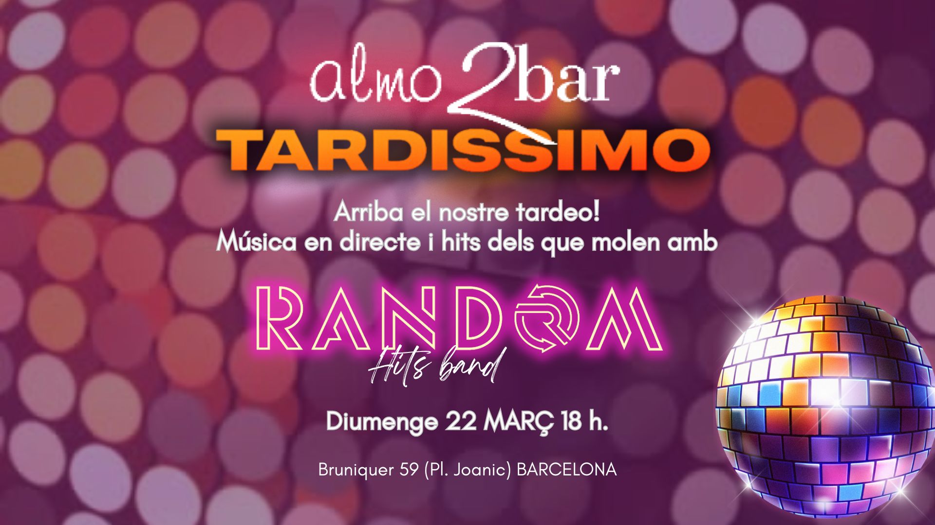 Random inicia la nova temporada de concerts aquest diumenge 22 de març amb Tardíssimo, una tarda de música en directe per començar a escalfar motors abans de l’arrencada de les Festes Majors i les revetlles d’estiu.